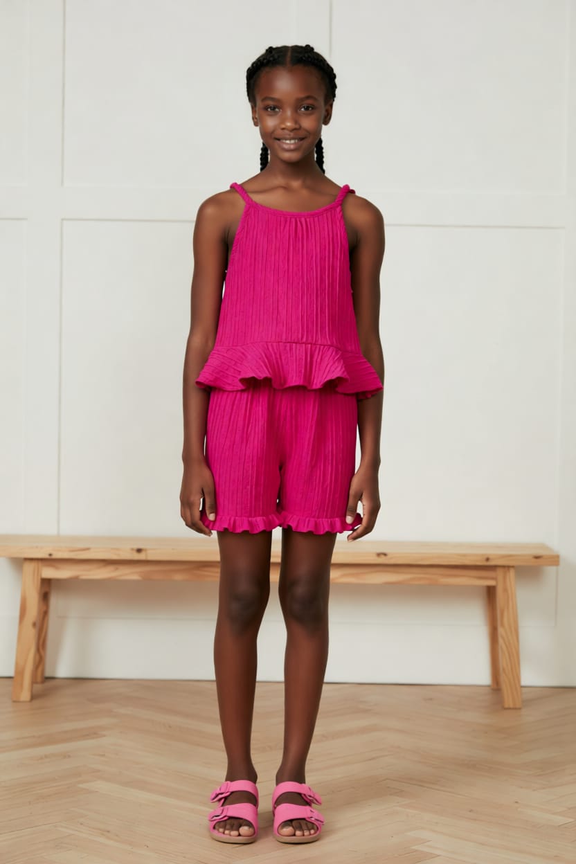 Deixe os dias quentes ainda mais encantadores com este lindo conjunto infantil feminino, perfeito para acompanhar as pequenas em momentos de lazer, passeios e brincadeiras. Confeccionado em poliéster leve e macio, oferece conforto durante todo o dia, sem limitar os movimentos.